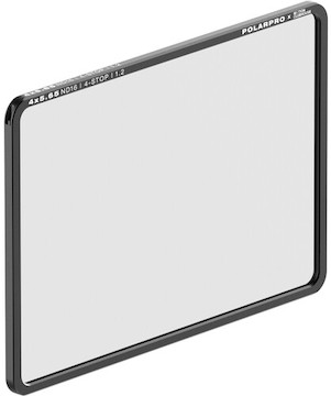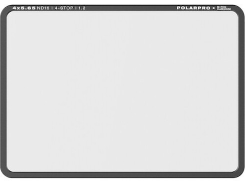 The 4 × 5.6 PolarPro ND16 Neutral Density Filter (4-Stop) is a lightweight, glass filter designed for use with standard matte boxes to provide optimal light transmission. Key features include: