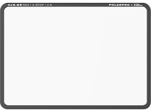 The 4 × 5.6 PolarPro ND4 Neutral Density Filter (2-Stop) is a lightweight, glass filter designed for use with standard matte boxes to provide optimal light transmission. Key features include: