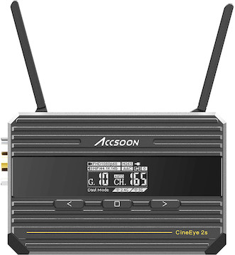 The Accsoon CineEye 2S SDI/HDMI Transmitter w/ Power Kit is a user-friendly, inexpensive wireless video system capable of streaming to up to 4 mobile devices. Key features include: