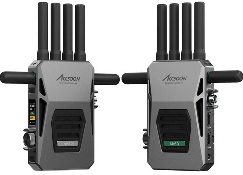 This CineView Master 4K SDI/HDMI Wireless Video Transmission System from Accsoon helps facilitate wireless UHD 4K video transmission with improved user interface and greater range than previous models. Send UHD 4K60 video up to 1.6 miles from the transmitter to the receiver unit with only a 35 ms delay. Wired connections on the receiver include 3G-SDI and HDMI output ports. Wired connections on the transmitter include 3G-SDI and HDMI input ports, HDMI loop output, and USB-C video output for your iOS devices.