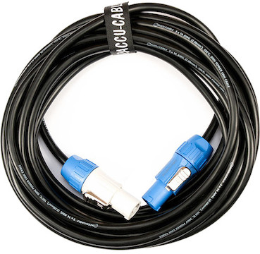 The Locking PowerCON Cable from American DJ is an interconnect power cable equipped with powerCon connections on both ends. They are color-coded with blue for power-in and gray for power-out. PowerCON cables are used to supply power to, or between, select audio, video, and lighting equipment, including DJ lights, theater lights, amplifiers, powered speakers, and power distribution boxes.