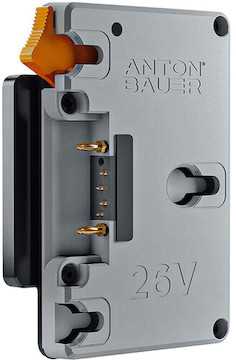 The Anton Bauer Dionic 98Wh 26V Gold Mount Plus Battery is compatible with this battery plate.