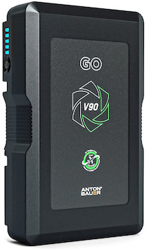 The Anton Bauer Go 90 V-Mount Battery is a powerful, lightweight, slim-profile AB V-Mount battery with a 8A continuous output. Key features include:
