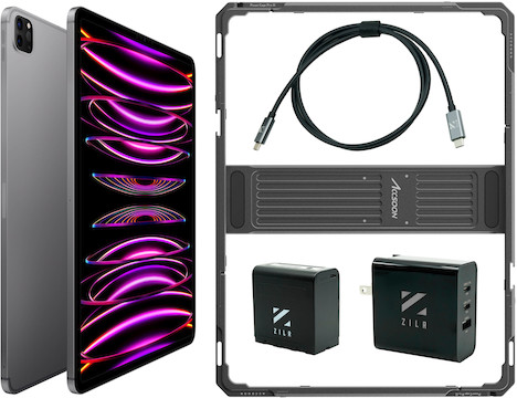 The Apple iPad Pro M2 Powercage Kit consists of all of the components needed to protect and add mounting points to the Apple iPad Pro 12.9-inch M2 (Wi-Fi + 5G LTE) 1TB 2022. Key features include: