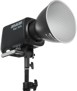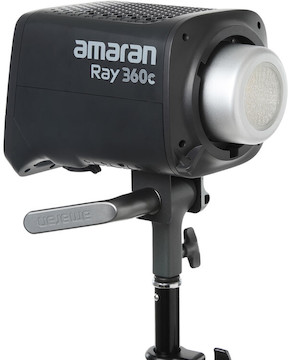 The Aputure amaran Ray 360c RGB LED Monolight is a full-color, compact powerhouse LED offering high color accuracy, a wide CCT range, and a selection of studio effects like fireworks, faulty bulb, lightning, and more. Key features include: