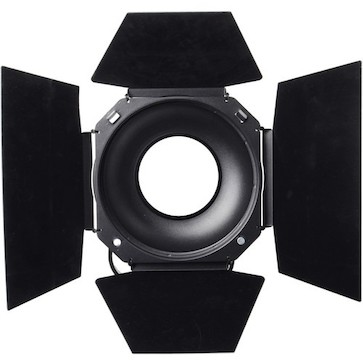 The Aputure Barndoors for LS 300d II and 120d II LED is a 4-way light modifier designed to fit select Bowen S mounted fixtures. Each of the four leaves can be swung to block certain areas of light if needed. As of our current inventory, this barndoor is only compatible with the Aputure LS C300d II LED – V-Mount and Aputure LS C300d II LED – Gold Mount kits.