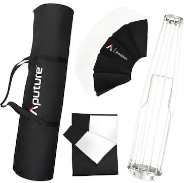 The Aputure Lantern Softbox is a durable modifier that’s excellent for overhead lighting and for raising your shoot’s ambient illumination level. Key features include:
