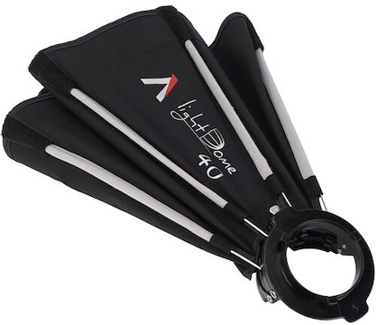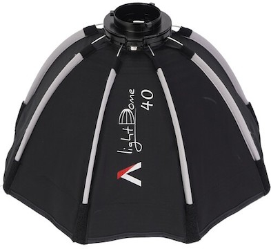The Aputure Light Dome 40 with Grid for STORM 80c is an eight-sided Mini ProLock diffusion accessory design to soften light output on the Aputure STORM 80c. This dome diffuser features two diffusers with 1- to 2-stops of light loss and a removable control grid to perfect light intensity and quality.