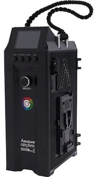 Gold Mount Power. The LS 600c II includes an AC adapter as well as dual, stand-mounted Gold Mount battery plates. The fixture will run at half power for a short amount of time using 14.4V / 15A, 26V / 8.5A, or 28.8V / 7.5A batteries. This rental does not include batteries or a charger, but we have them available separately here. We also rent this light in a V-Mount configuration.