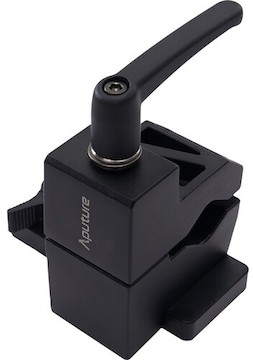Mounting. This light’s attached yoke has a combination mount that lets you use either a junior or baby pin stand or hanging clamp.