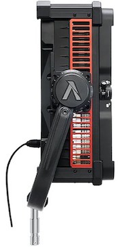 Mounting. The 41-pound light features a combo baby receiver/junior pin yoke for mounting and positioning, so you’ll need to rent the Kupo 6.7-foot Low Mighty Combo Stand or have a similar compatible heavy-duty stand. Sandbagging is highly encouraged.