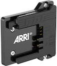 Use a pro B-mount battery (not included) to power your Alexa 35 camera with the ARRI B-Mount Battery Adapter, which can be mounted directly onto the back of the camera or piggybacked onto a mounted PDM-1 power module or AEM-1 audio module (not included).