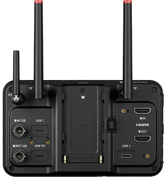 Power. You have the option of powering the Ninja TX with an NP-F L-series battery (not included) or through one of the USB-C ports with 30W power delivery. Included is a Thunderbolt 5 cable and power adapter.