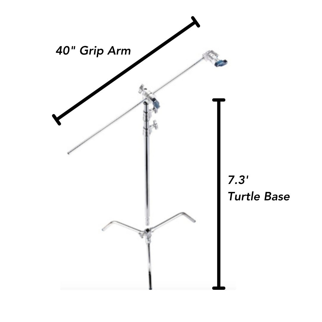 The Avenger 7.3ft Turtle Base C-Stand Grip Arm Kit is an all-in-one, heavy-duty light stand kit that provides sturdy support for heavy lighting equipment along with a set of must have mounting options for lights and accessories. Key components include: