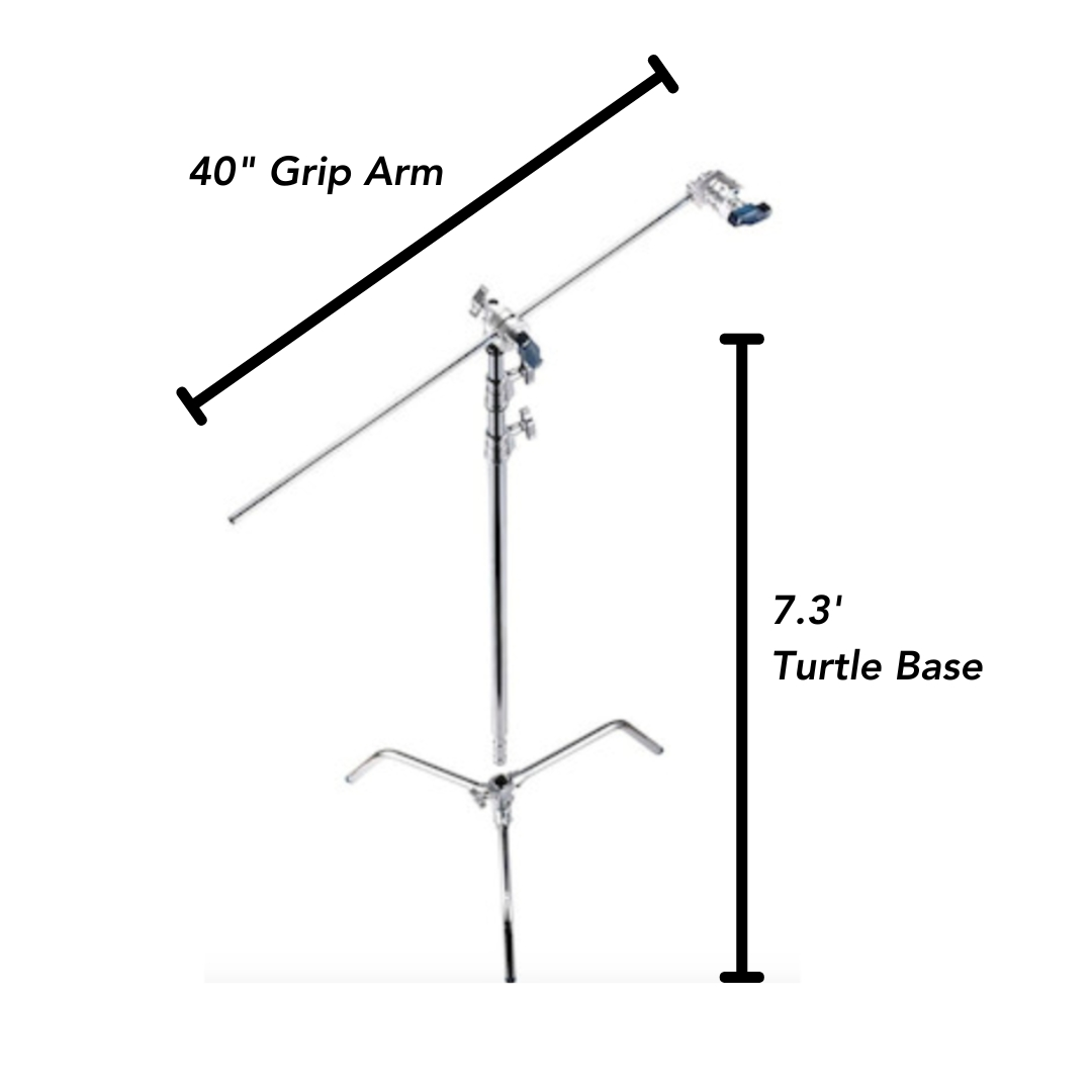 The Avenger 7.3ft Turtle Base C-Stand Grip Arm Twin Kit is a double C-stand and grip arm kit that provides sturdy support for heavy lighting equipment along with a set of must have mounting options for lights and accessories. Key components include: