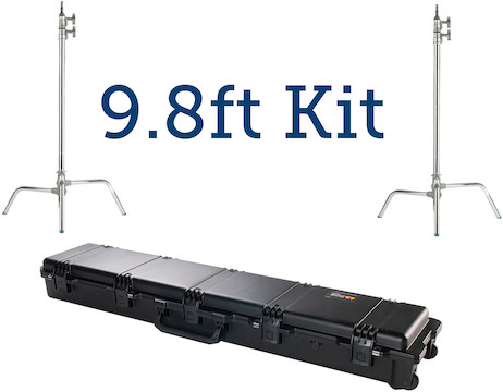 The Avenger 9.8ft Turtle Base C-Stand Twin Kit consists of two of our sturdy, heavy-duty 9.8-foot light stands for supporting heavy lighting equipment, all in a rolling hard case. Key features include: