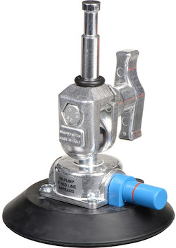 The Avenger F1000 Pump Cup with Baby Swivel Pin features a 5.8-inch suction cup that will adhere to any flat non-porous surface and a ball-joint socket with a half-hemisphere range of rotation. It will support small lights, light cameras, scrims, flags, and articulated arms.