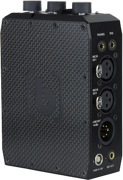 Pro-Grade Build. The DXA-ALEXA’s carbon-fiber chassis weighs in at under one pound, its slim-line design will fit just about anywhere in your rig without being obtrusive, and its weather-resistant top panel ensures reliable functionality in inclement conditions. There are three threaded 1/4"-20 holes so that you can mount this preamp on a third-party bracket’s rails, and this rental includes a bracket for mounting to camera cages, such as the ALEXA Mini’s.