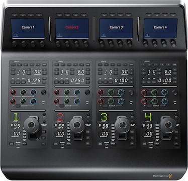 The Blackmagic ATEM Camera Control Panel provides tactile camera control of four Blackmagic URSA Mini, URSA Broadcast, Studio, or Micro Studio cameras. Key features include:
