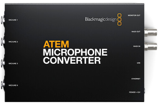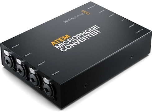 The Blackmagic Design ATEM Microphone Converter is designed to expand audio-input using a ATEM Television Studio, or would also make a perfect addition to your podcasting studio. Key features include: