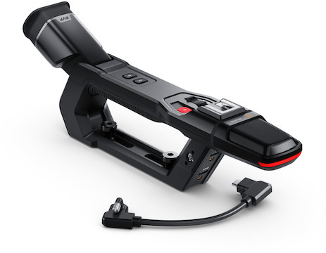 The Blackmagic PYXIS Pro Handle connects to the top of the PYXIS 6K camera. Key features include: