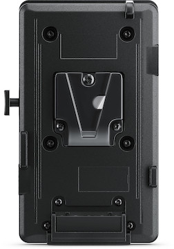 Battery Plate. This V-mount Battery Plate from Blackmagic Design is specifically designed to work with the URSA Cine camera. The sturdy plate enables the attachment of a single third-party V-mount battery directly to the rear of your camera without the need for any extra cabling.