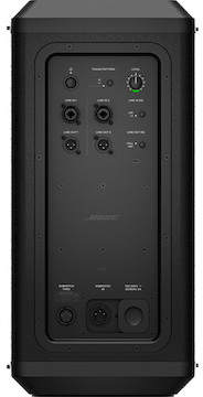 Mic It Up. The Bose S1 Pro+ Wireless Mic/Line Transmitter (XLR) connects to a S1 Pro+ via one of the two integrated ports on the back of the PA, near the channel controls. There’s a rubber protective cover over these ports to keep them clean, but they’re easy to remove, as is connecting this device!