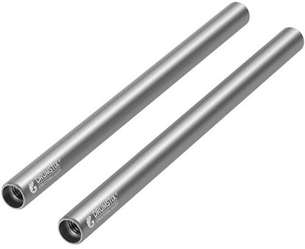 The Bright Tangerine Drumstix 15mm Aluminum Rod Set 9-inch is a pair of lightweight aluminum rods offering M12 female threads for easy rod extension. Key features include: