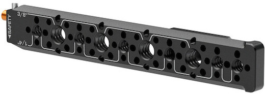 This Bright Tangerine Floating NATO Side Rail for Sony BURANO integrates into your BURANO configuration using other available Bright Tangerine accessories, like the Sliding Top Handle or NATO Cheese Plate. The rail provides you with two 1/4"-20 captive mounting screws and several 1/4"-20 and 3/8"-16 threads for ample accessory mounting, while a safety release button glides your accessories on and off in a breeze.