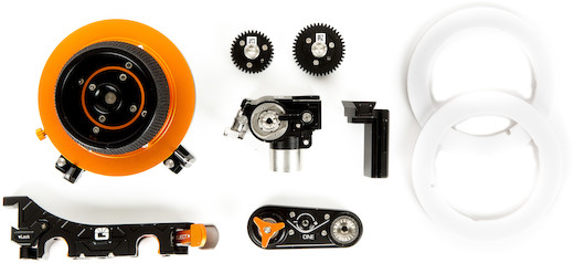 Revolvr Gears. The Atom Cine Kit includes a 0.8-pitch, 35-tooth,10mm face gear and a 0.8-pitch, 43-tooth, 6mm face gear, both of which interface with lenses that have cine-style geared focus, zoom, or iris rings. Their width gives you flexibility in follow-focus placement.