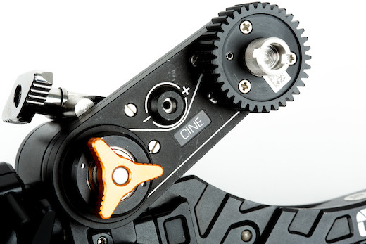 Revolvr Cine Swing Arm. You can mount the Revolvr Swing Arm Cine on either side of the Core Bridge’s drive transmission to match the focus gear’s position. Its custom drive belt and built-in tension adjustment roller helps prevent backlash, and it features a 1:1.842 gear ratio.