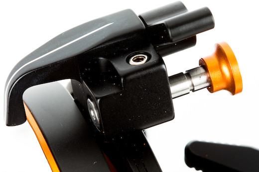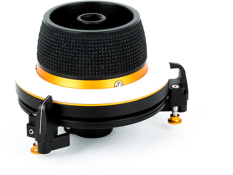 Revolvr Atom Focus Handwheel. This handwheel is a mini version of Bright Tangerine’s standard handwheel, but continues the ergonomic, conical design. Its raised, ribbed surface gives you a secure grip, while the removable marking discs include detents that prevent them from rotating on the handwheel.