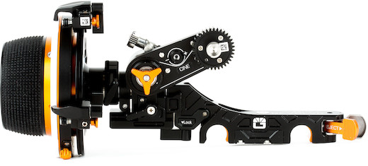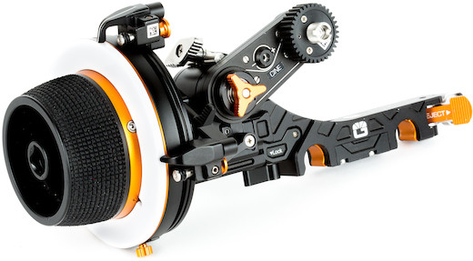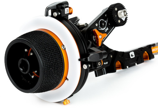 Compact Follow-Focus Unit. The Bright Tangerine Revolvr Atom Cine Kit’s compact build and single-sided design make it ideal for hand-held and close-quarters work. Its single-sided focus bridge is designed to be mounted on 15mm LWS spaced rods. Its hand wheel and bridge both accept standard accessories, and this kit includes a swing arm, two mod wheels, and two removable marking discs.