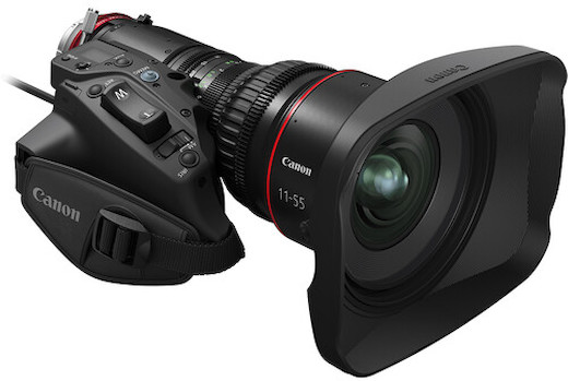The Canon Cine-Servo 11-55mm T2.95-4.4 (PL) is a lightweight zoom lens offering Super35 coverage through its standard zoom range, and Full-Frame sensor coverage with its built-in 1.5x extender engaged. Key features include: