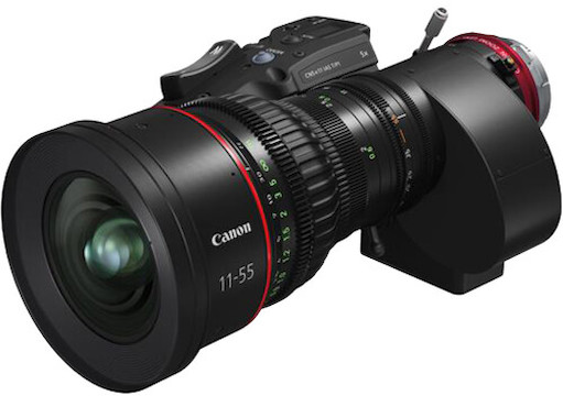 The Canon Cine-Servo 11-55mm T2.95-4.4 (RF) is a lightweight zoom lens offering Super35 coverage through its standard zoom range, and Full-Frame sensor coverage with its built-in 1.5x extender engaged. Key features include: