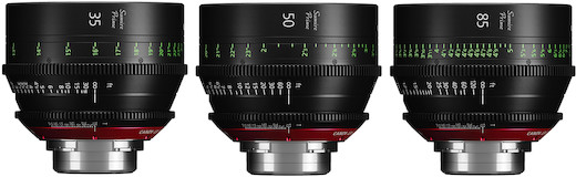 The Canon CN-E Sumire Prime Standard 3-Lens Set (PL) includes: