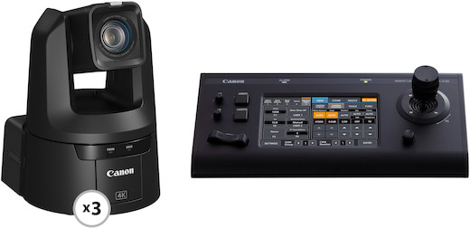 The Canon CR-N700 PTZ 3-Camera and Controller Kit consists of three CR-N700 PTZ Cameras and a RC-IP100 Joystick Controller. Key features include: