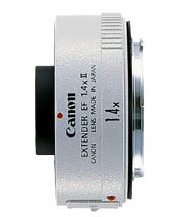This teleconverter provides 1.4x image magnification at the cost of 1 f-stop of aperture. Very little image degradation occurs when used with telephoto prime lenses, and it is useable with Canon’s L-series telephoto zooms (however, you may lose the ability to autofocus.).