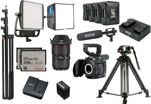 The Canon C200 EF Video Production Kit is a battery-powered, tripod-mounted camera package with diffused, single-point lighting. It’s perfect for single-subject interviews that need cinema-quality video and audio while maintaining a small footprint. The camera can be controlled via the Browser Remote application on a PC or mobile device by connecting to the camera’s ad hoc Wi-Fi or wired LAN. Footage is recorded to the included CFast 2.0 media in Canon RAW Light at DCI 4K resolution. If you’d like more information on the components included, please click the links below.