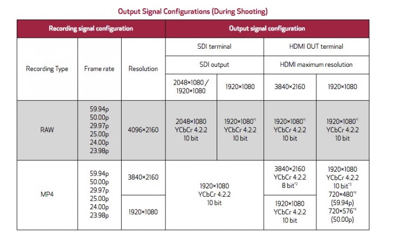 12-bit/10-bit 4K RAW or 4:2:0 8-bit in 4K UHD/2K