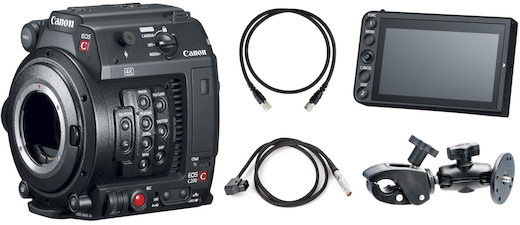 No. The standard C200 accessories used for off-gimbal work have been substituted in this kit for accessories that streamline the C200B for gimbal use. If you would like to add a top handle for off-gimbal work, the Canon HDU-2 Handle Unit for EOS C200/C200B is available for rent separately and can be used along with the included RAM Mount Clamp to securely attach the LCD on camera.