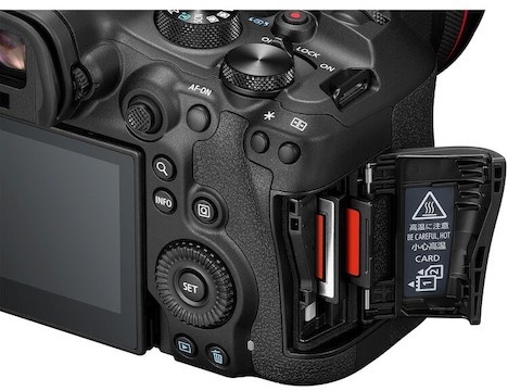 User Flexibility. The R6 III records to both CFexpress Type B and UHS-II SD memory cards (not included) for broad compatibility in a familiar format. Please note that 7K recording is only available with CFexpress Type B cards. The camera is powered by the popular Canon LP-E6P Battery.