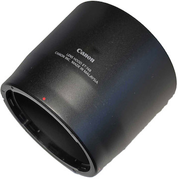 The ET-74B Lens Hood is compatible with the Canon EF 70-300mm f/4-5.6 IS II and the Canon RF 100-400mm f/5.6-8 IS. It helps minimize flare by deflecting stray light from entering the lens. The hood also provides additional protection to the lens from accidental impacts, bumps, or scratching.