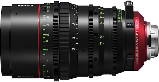 Cine Lens Build. The CN-E 45-135mm is enclosed in a traditional video-lens housing. Its focus, zoom, and iris rings have industry-standard gears and 0.8mm pitch, so you can use most standard follow focuses and other third-party accessories. This lens offers a focus-rotation angle of approximately 300 degrees, allowing for long focus throws. Its two-foot minimum focusing distance makes it possible to shoot in tight spaces.
