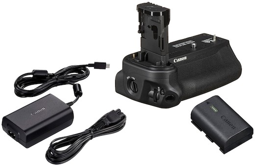 • If you need a traditional AC adapter for providing continuous power during use, you’ll want the Canon AC-E6N AC Adapter w/ DR-E6 DC Coupler.