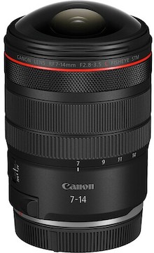 High-Quality Hybrid FIsheye. Capture rich, detailed fisheye photos and videos with this ultra-wide Canon RF 7-14mm f/2.8-3.5! Supported by its Leadscrew-Type STM Focus Motor and Nanu USM autofocus system, this lens delivers silent, fast focusing for a range of applications. With an impressive f/2.8 maximum aperture and 190° angle of view, this lens captures mesmerizing scenes for a wide range of applications, like sports, landscapes, astrophotography, and much more!