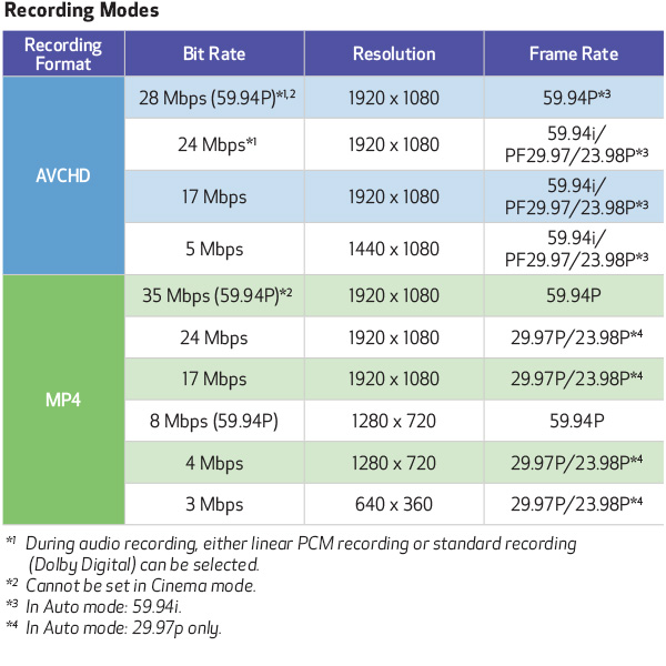 Record 35 Mbps in MP4 or 28 Mbps in AVCHD