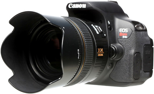 A cult favorite for crop sensor cameras (T5i, 7D), this lens combines great center sharpness and a very wide aperture. It’s compared, not unfavorably, with Canon’s legendary 35mm L-series lens. Very popular for indoor shooting in low light conditions. It’s also quite small physically, a lens you can literally tuck into a jacket pocket.