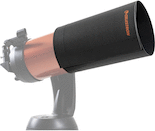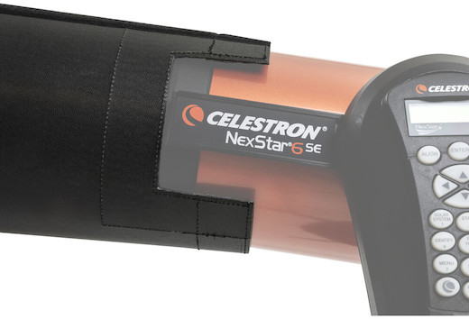 The Celestron Flexible Dew Shield DX attaches to the front of an 8SE or 6SE telescope to protect the corrector plate of the optical tube from dust and dew. It has a simple hook-and-loop/touch fastener closure and is lined in black felt to absorb light as well as prevent moisture from condensing and sliding toward the plate. This is an optimal add-on for your night sky viewing experience.