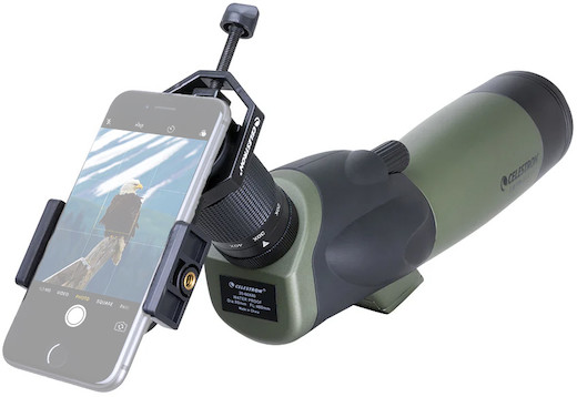 The Celestron Ultima 80 Spotting Scope w/ Smartphone Adapter Kit provides an easy way to capture distant objects directly with your smartphone. Key features include: